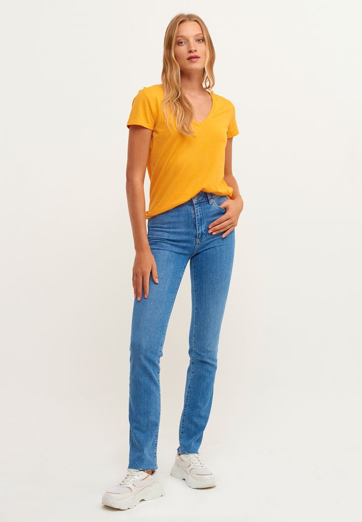 • Bayan Turuncu Pamuklu V-Neck Tişört
