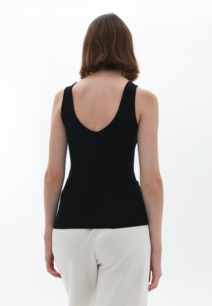 Siyah Pamuklu V Yaka Atlet