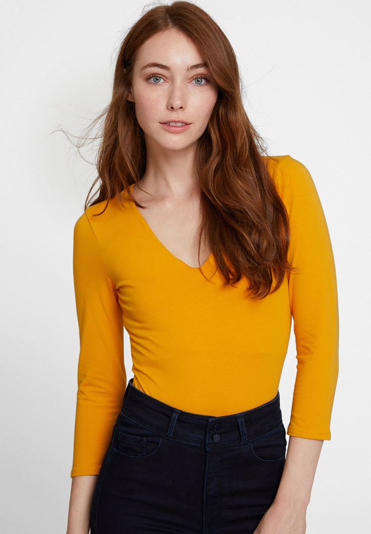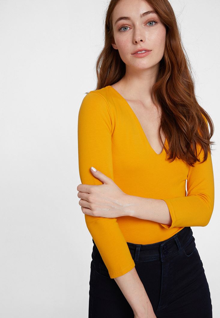 • Bayan Turuncu Pamuklu V Yaka Tişört