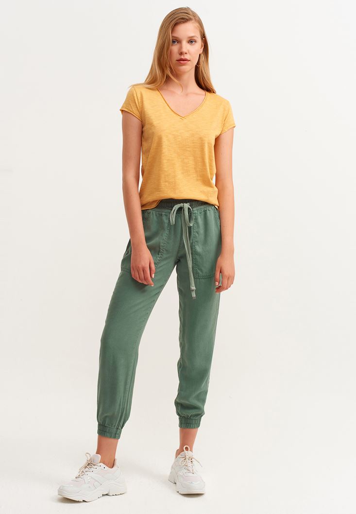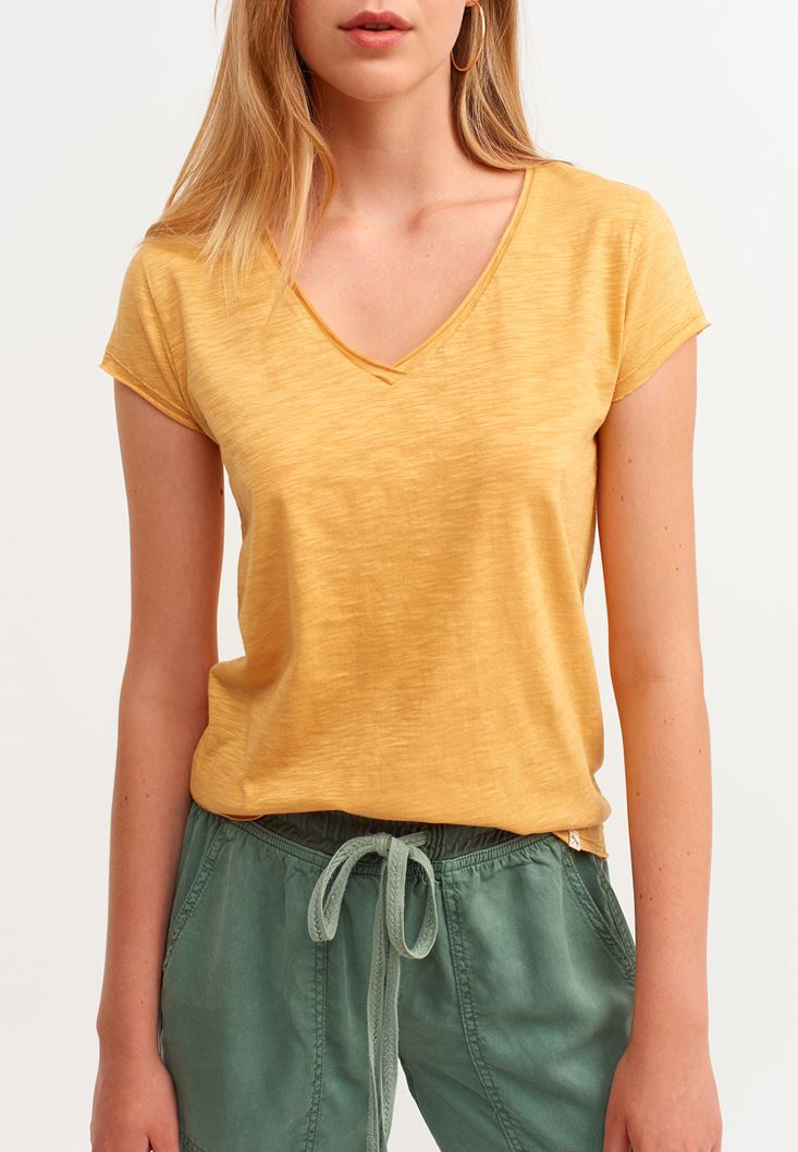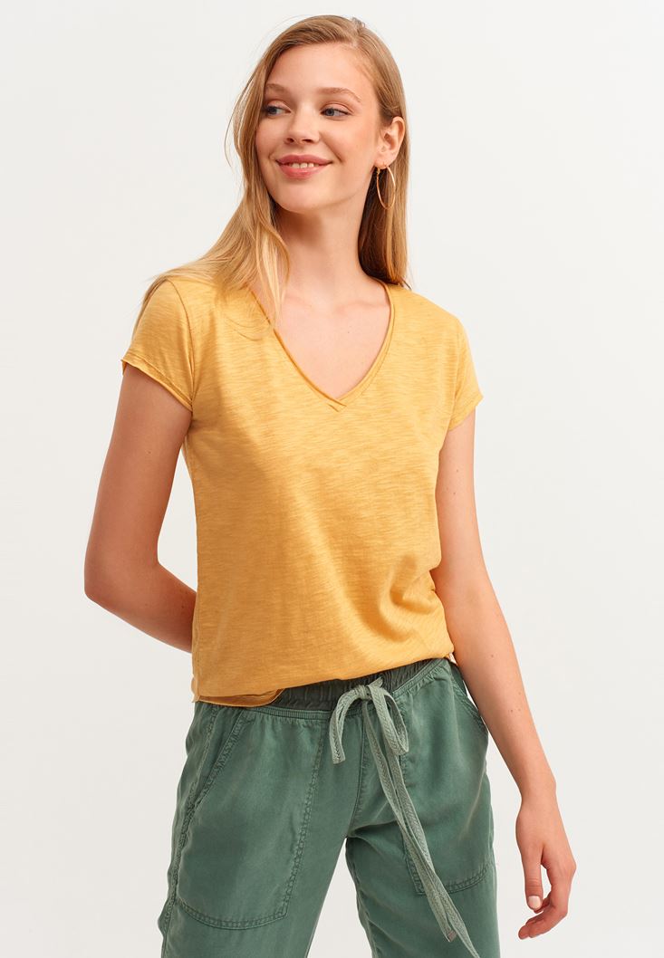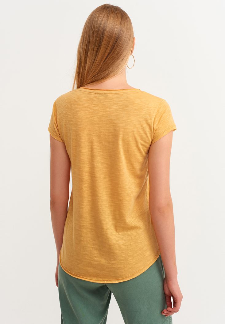 • Bayan Sarı Pamuklu V Yaka Tişört