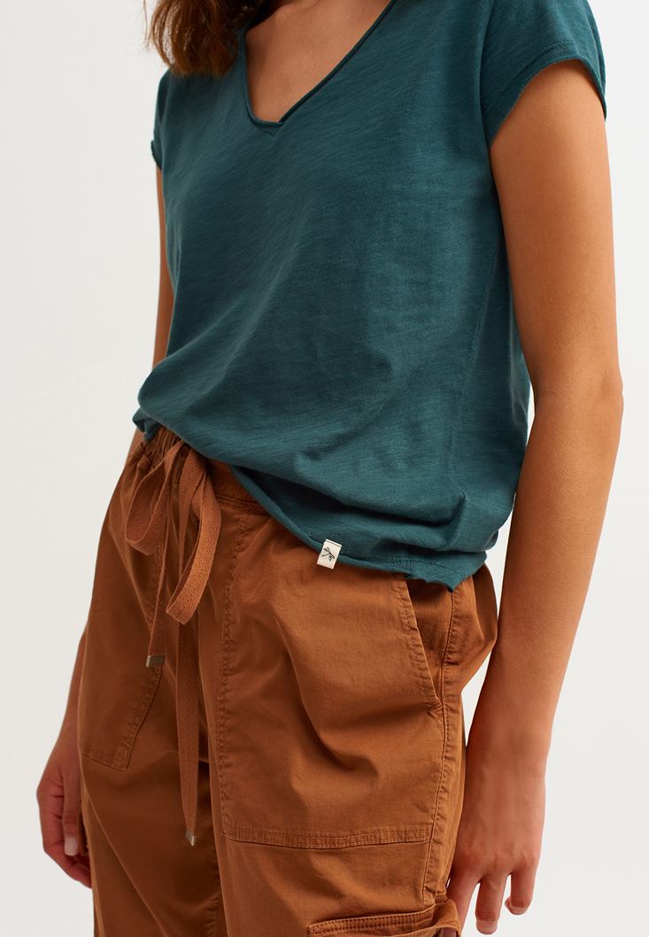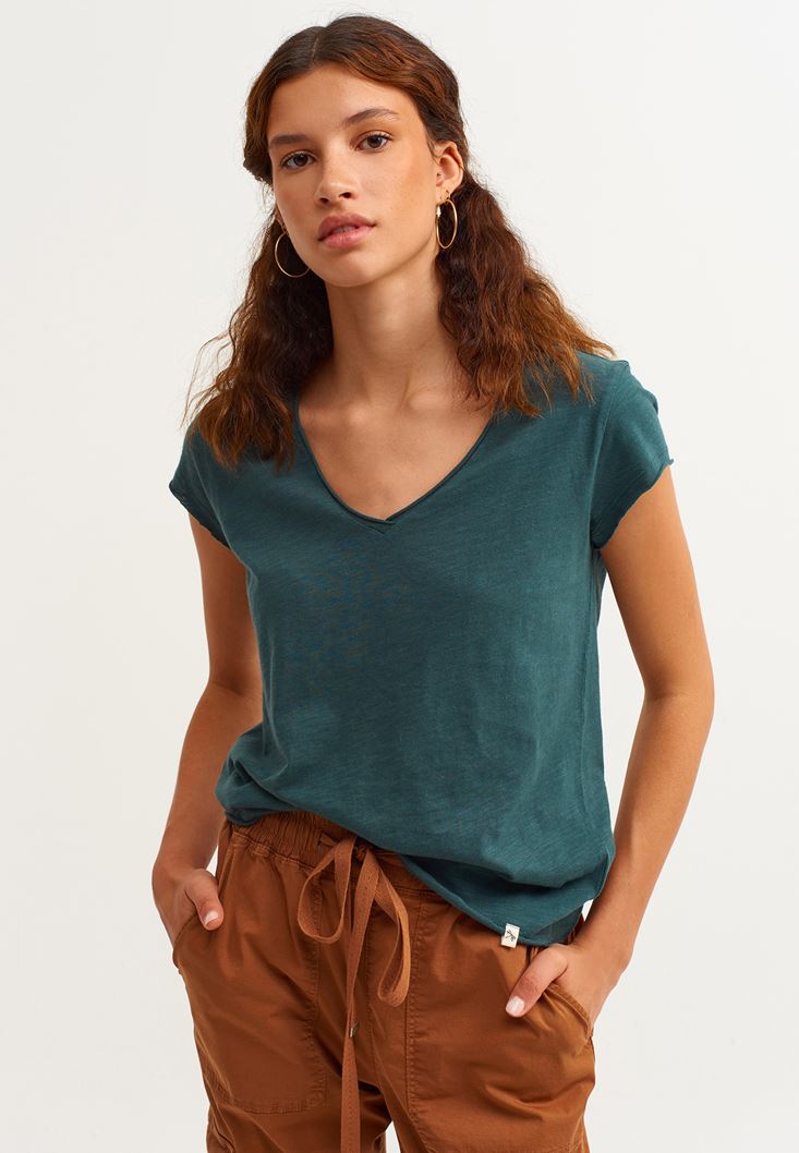 Yeşil Pamuklu V Yaka Tişört
