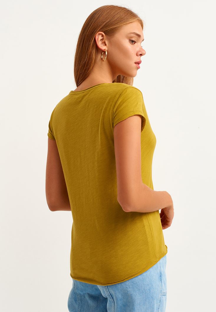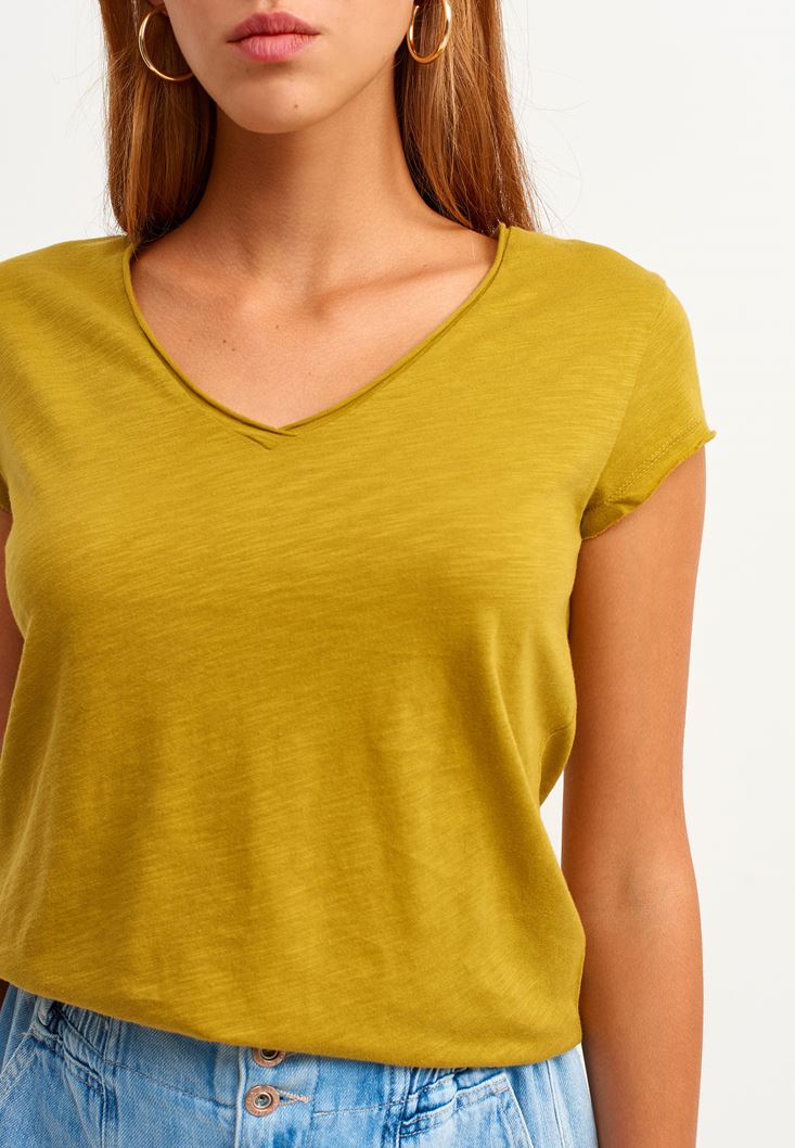 • Bayan Yeşil Pamuklu V Yaka Tişört