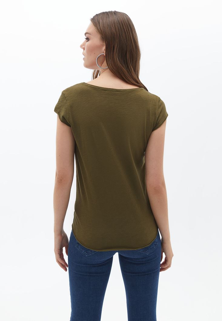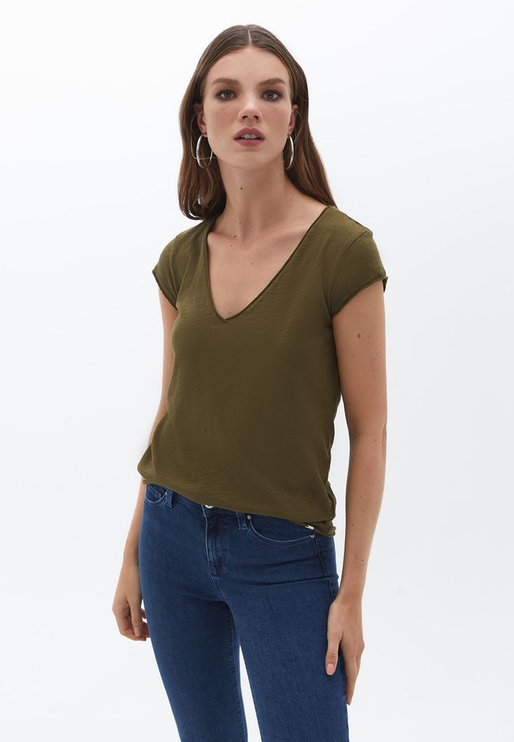 Yeşil Pamuklu V Yaka Tişört