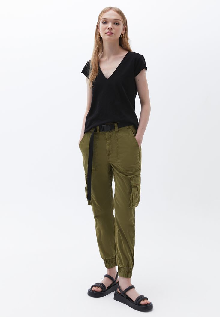 %100 pamuklu doku, V yaka kesimi, kesik detaylı kol ve etek ucu, bedenden uzak rahat form.