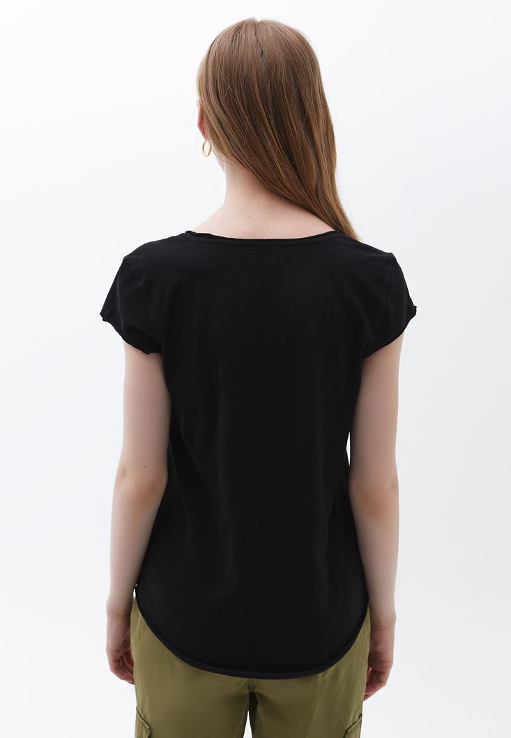 • Bayan Siyah Pamuklu V Yaka Tişört