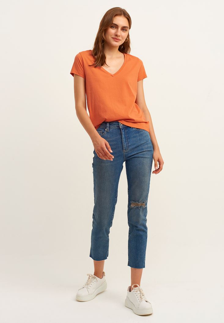 • Bayan Turuncu Pamuklu V Yaka Tişört
