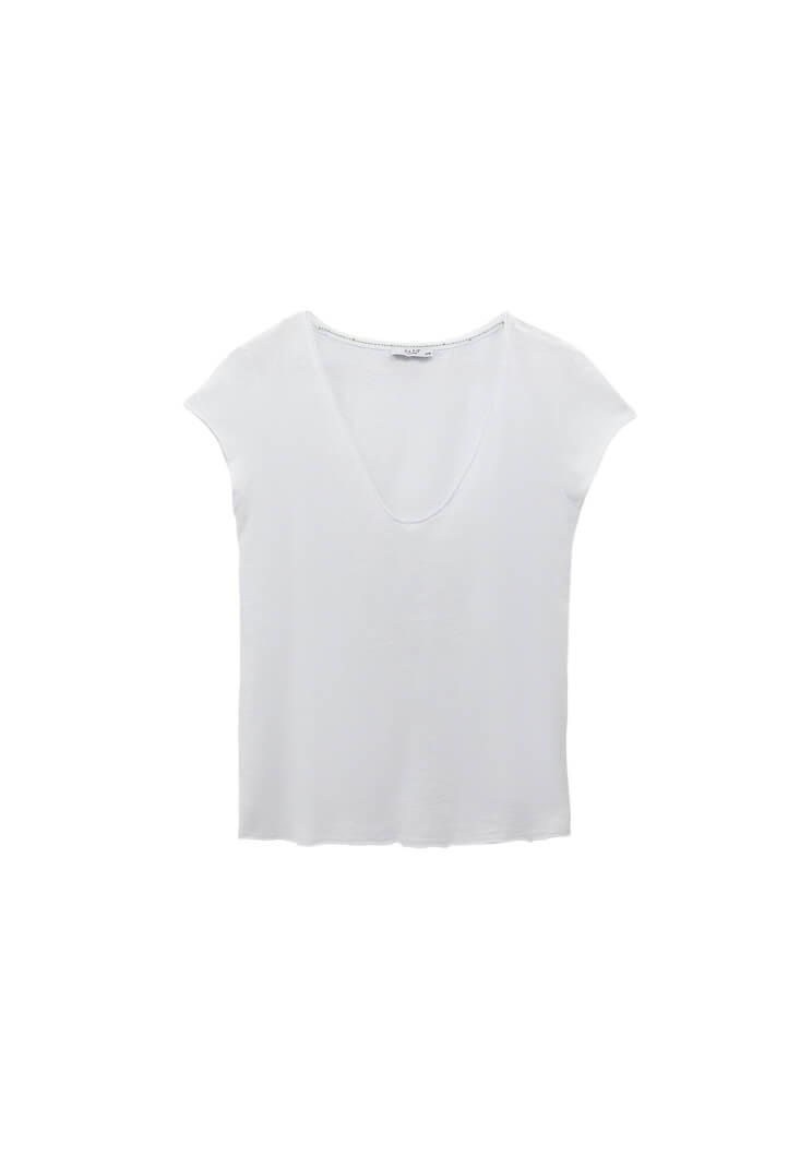 • Bayan Beyaz Pamuklu V Yaka Tişört