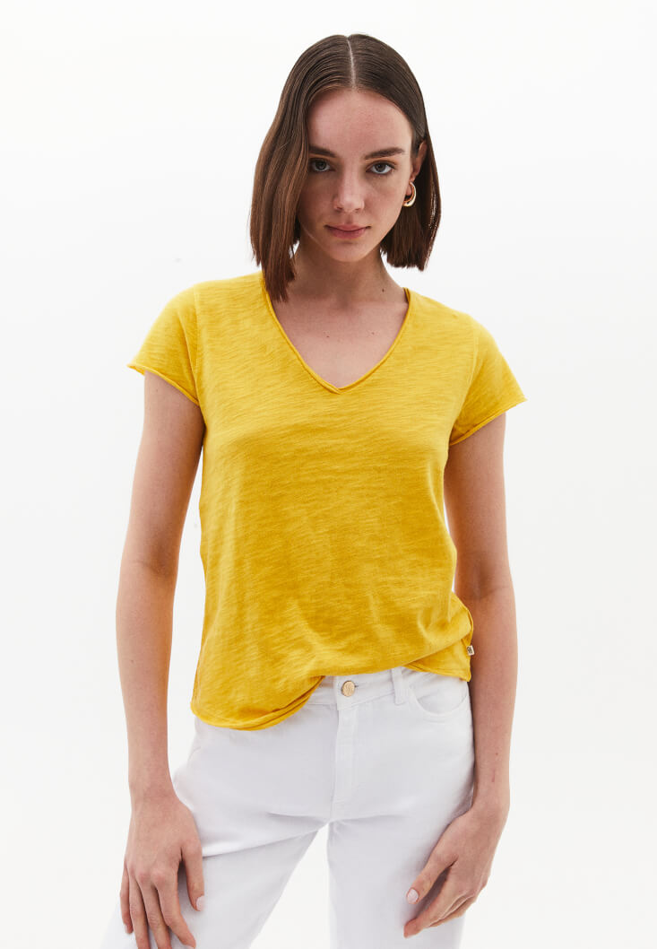 • Bayan Sarı Pamuklu V Yaka Tişört