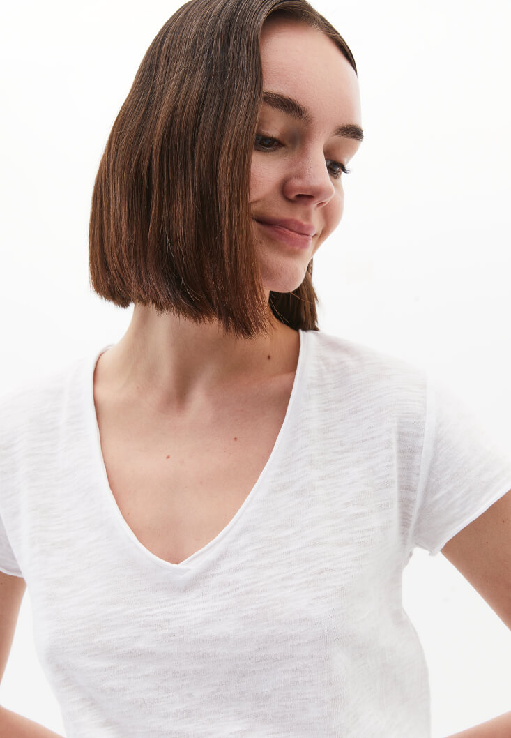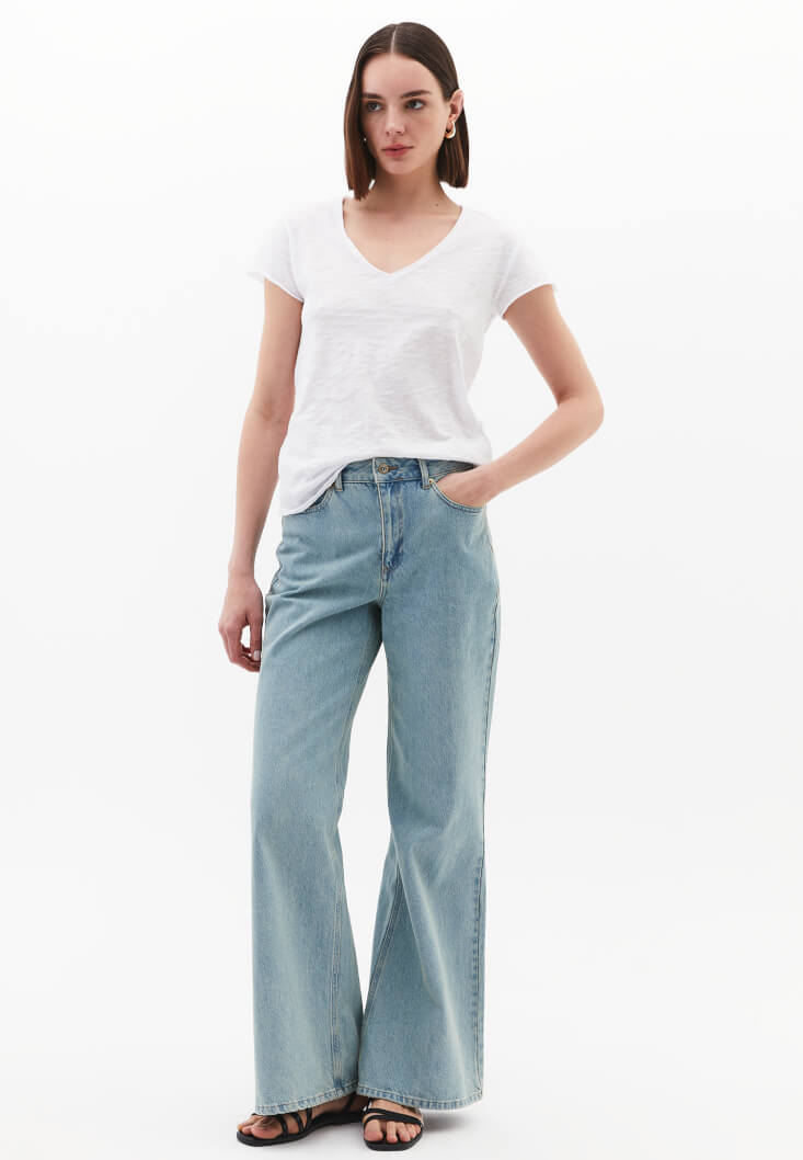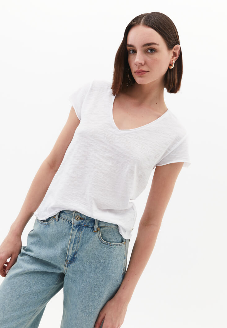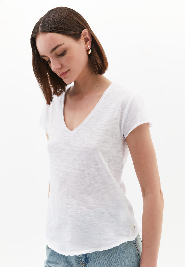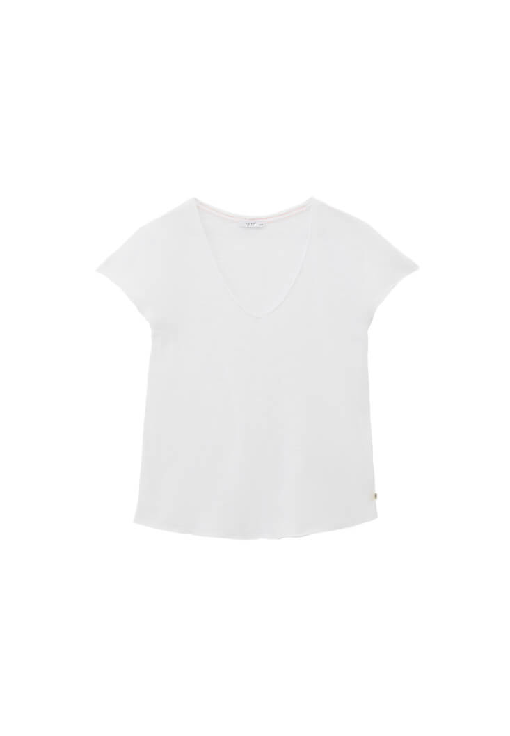 • Bayan Beyaz Pamuklu V Yaka Tişört