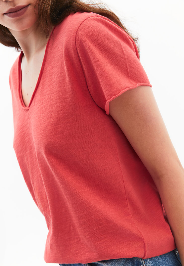 Pembe Pamuklu V Yaka Tişört