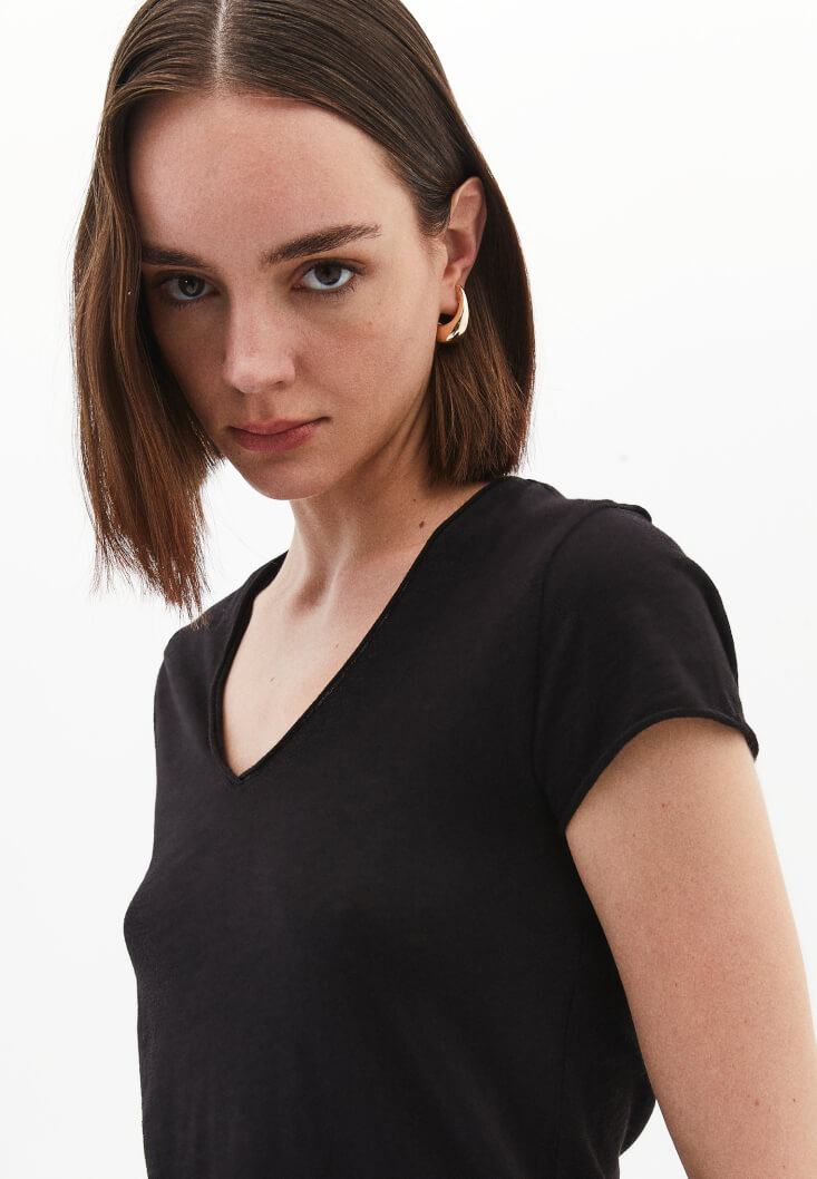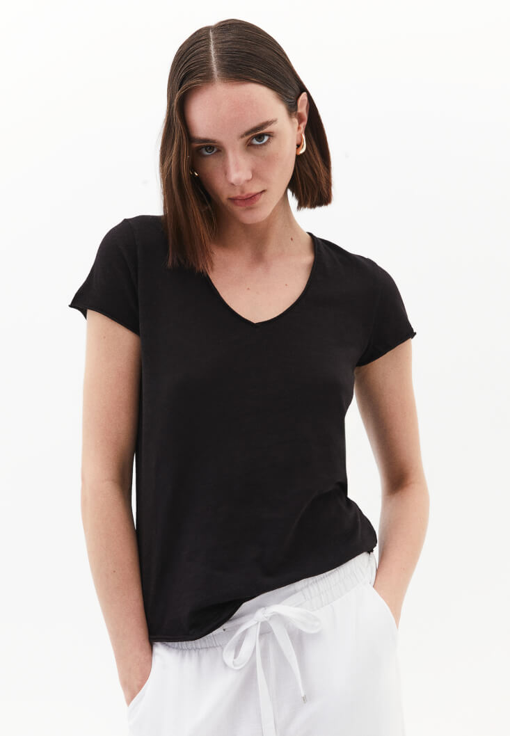 • Bayan Siyah Pamuklu V Yaka Tişört