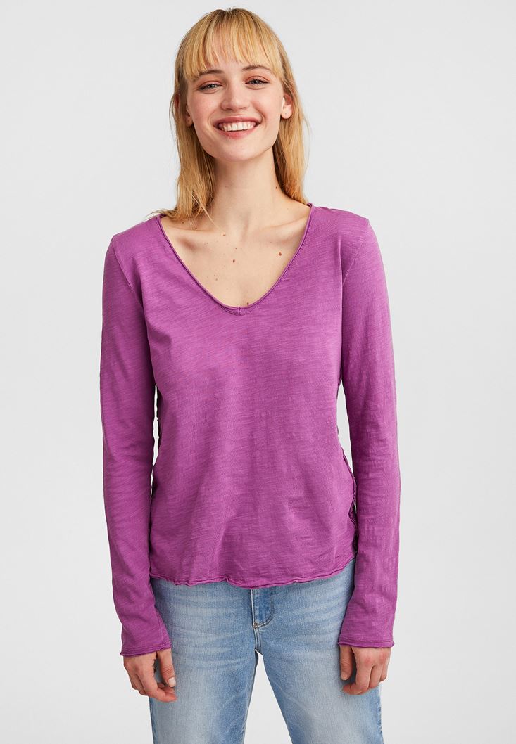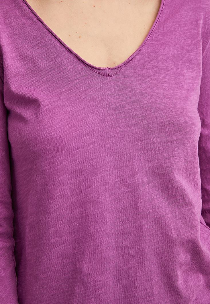 • Bayan Mor Pamuklu V Yaka Uzun Kollu