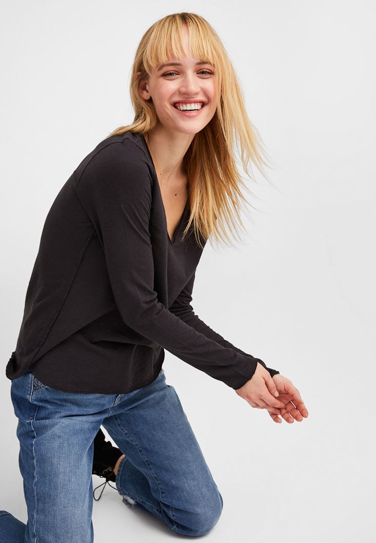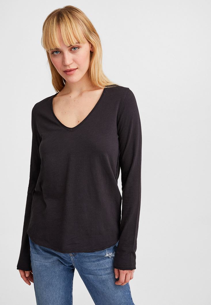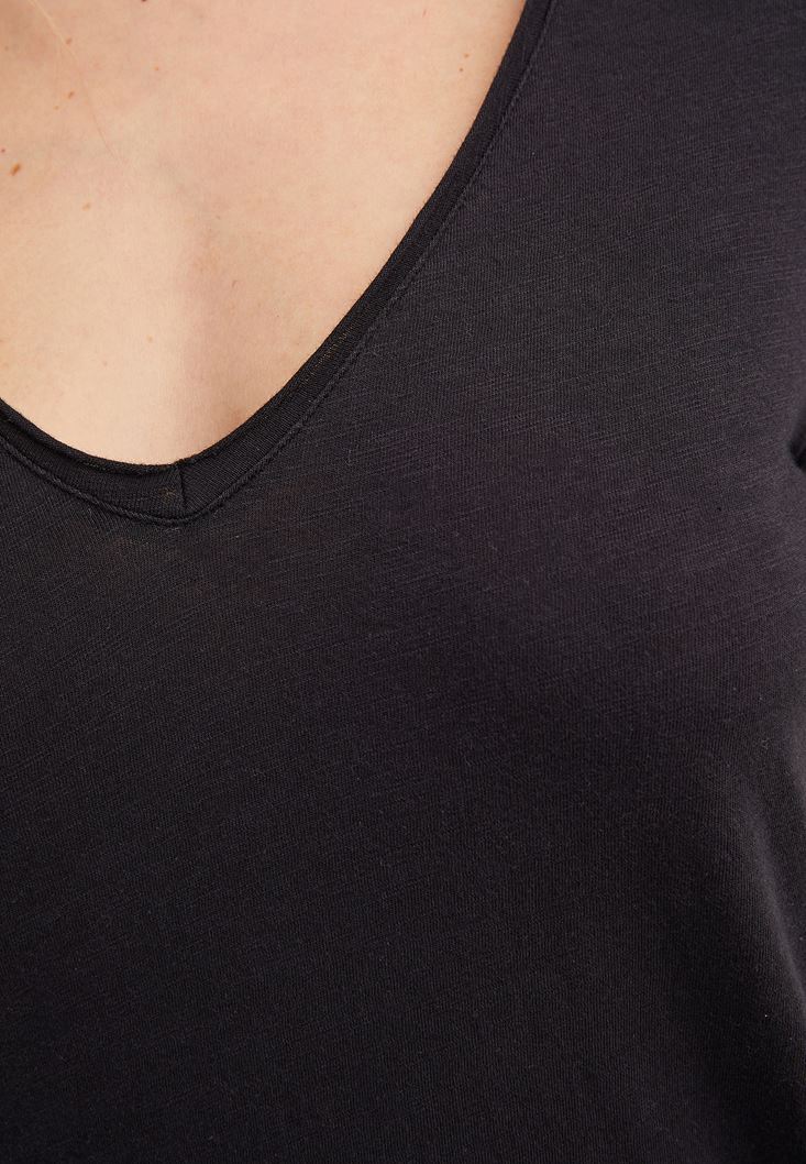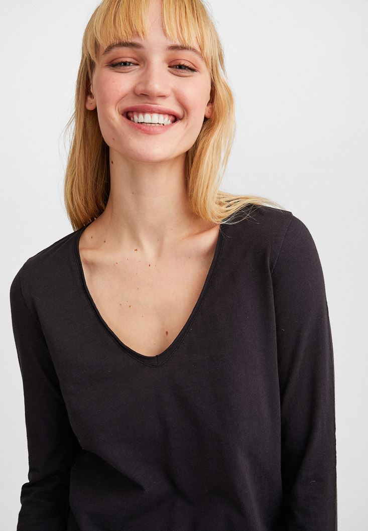 • Bayan Siyah Pamuklu V Yaka Uzun Kollu