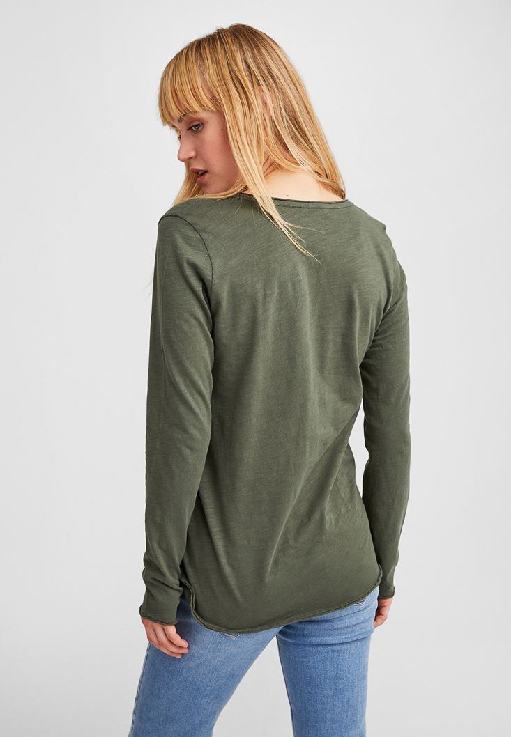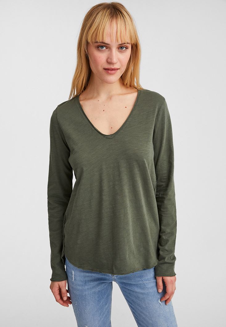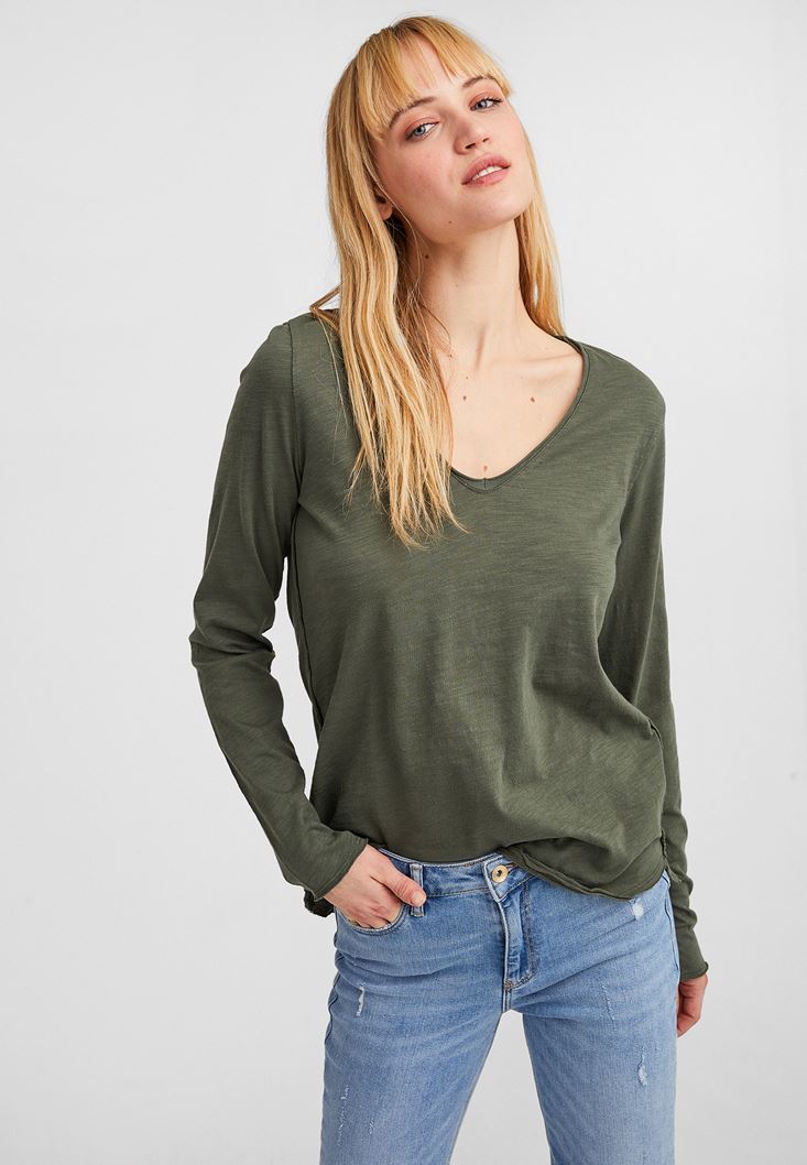 • Bayan Yeşil Pamuklu V Yaka Uzun Kollu