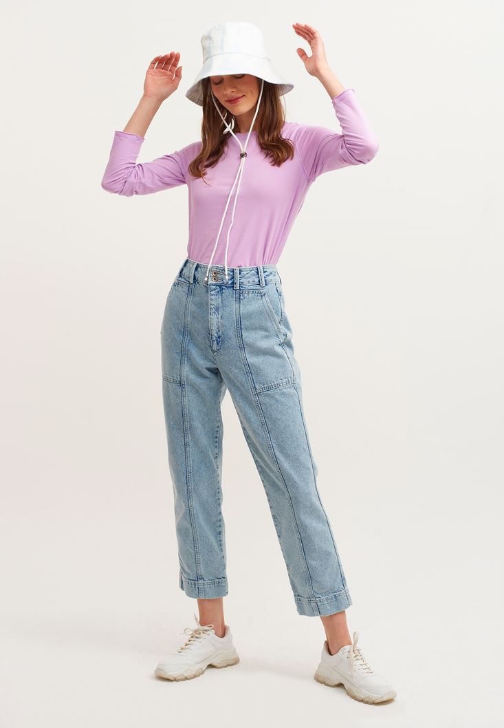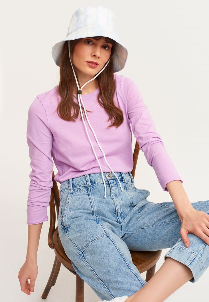 • Bayan Mor Pamuklu ve Uzun Kollu Tişört