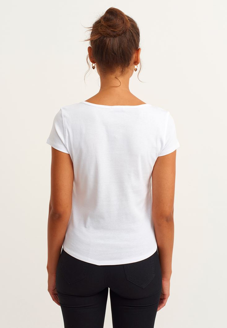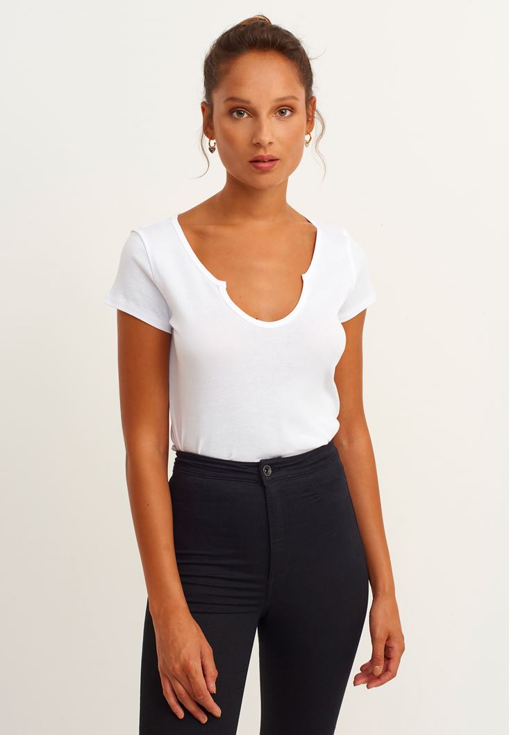 • Bayan Beyaz Pamuklu Yaka Detaylı Tişört