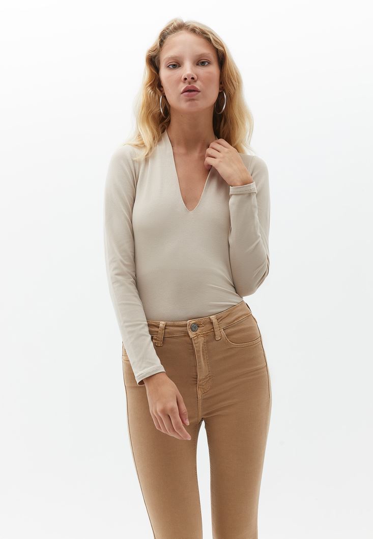 Fit: Bodycon / Yaka: V-Neck  / Kol: Long Sleeve