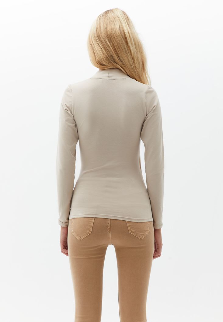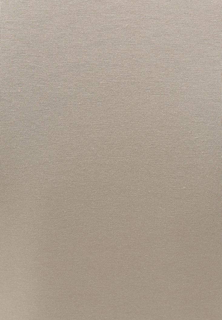 Bej Pamuklu Yaka Detaylı Tişört