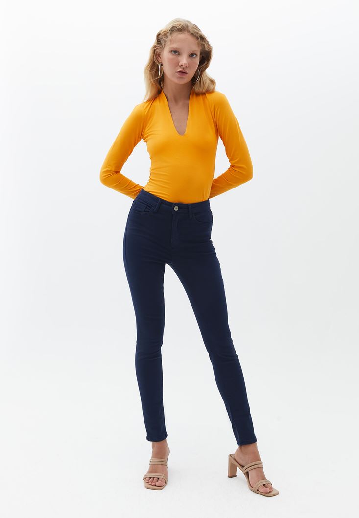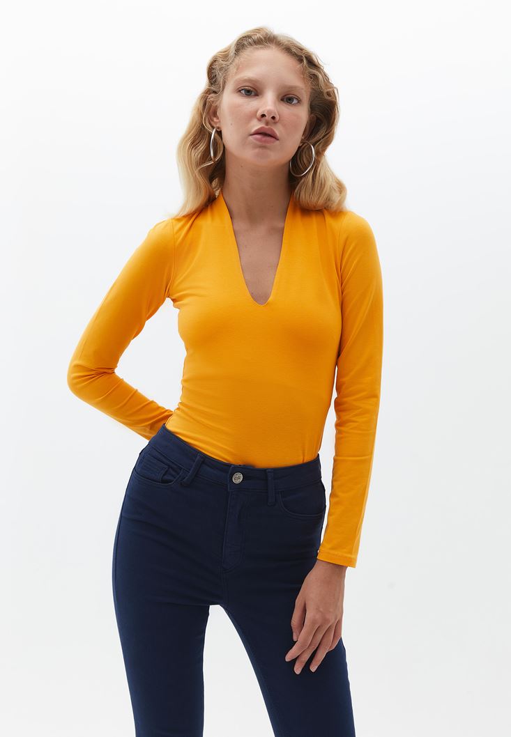 Fit: Bodycon / Yaka: V-Neck  / Kol: Long Sleeve