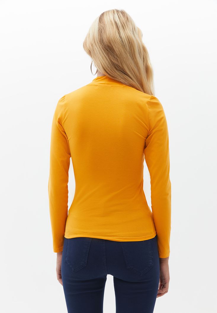 Turuncu Pamuklu Yaka Detaylı Tişört