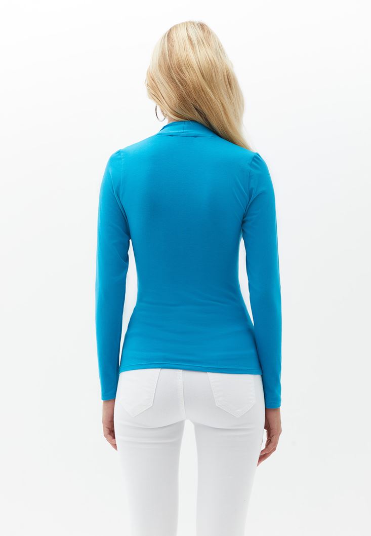 Mavi Pamuklu Yaka Detaylı Tişört