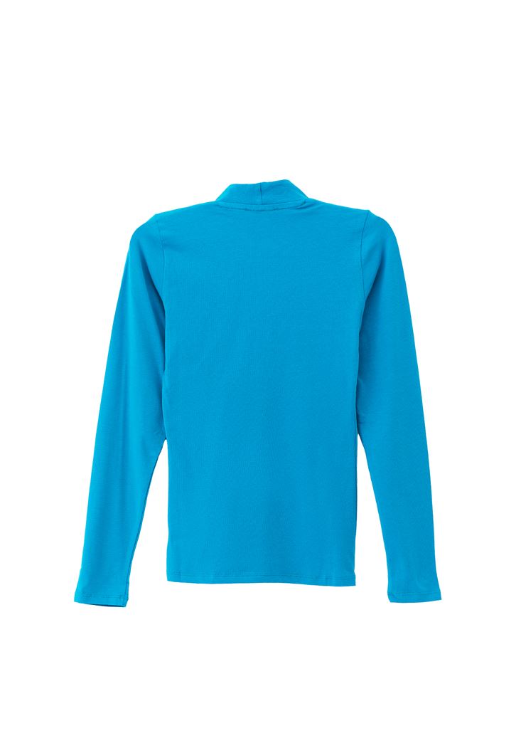 • Bayan Mavi Pamuklu Yaka Detaylı Tişört