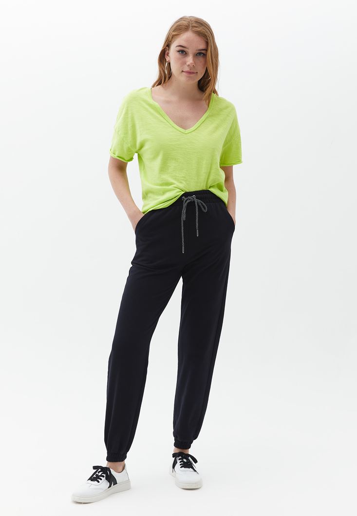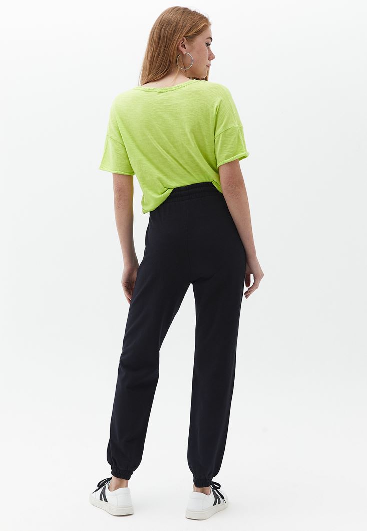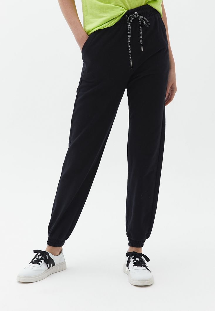 Siyah Pamuklu Yüksek Bel Jogger Pantolon