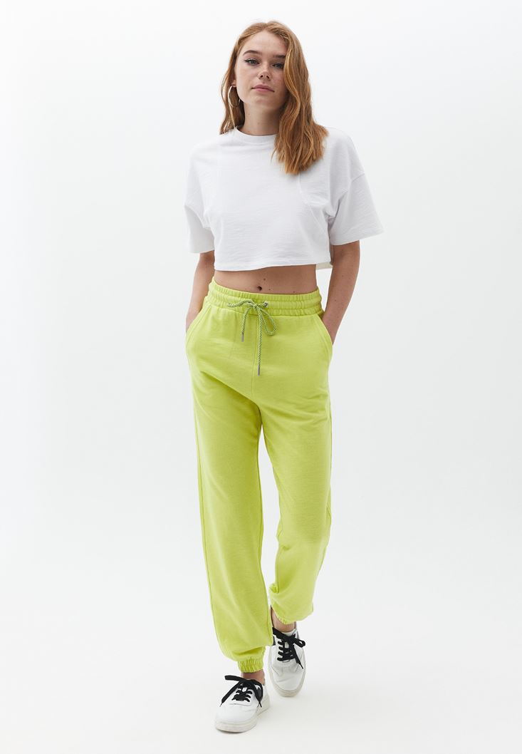 Yeşil Pamuklu Yüksek Bel Jogger Pantolon