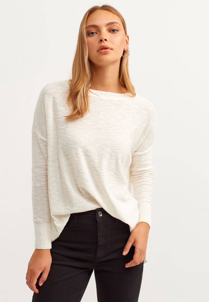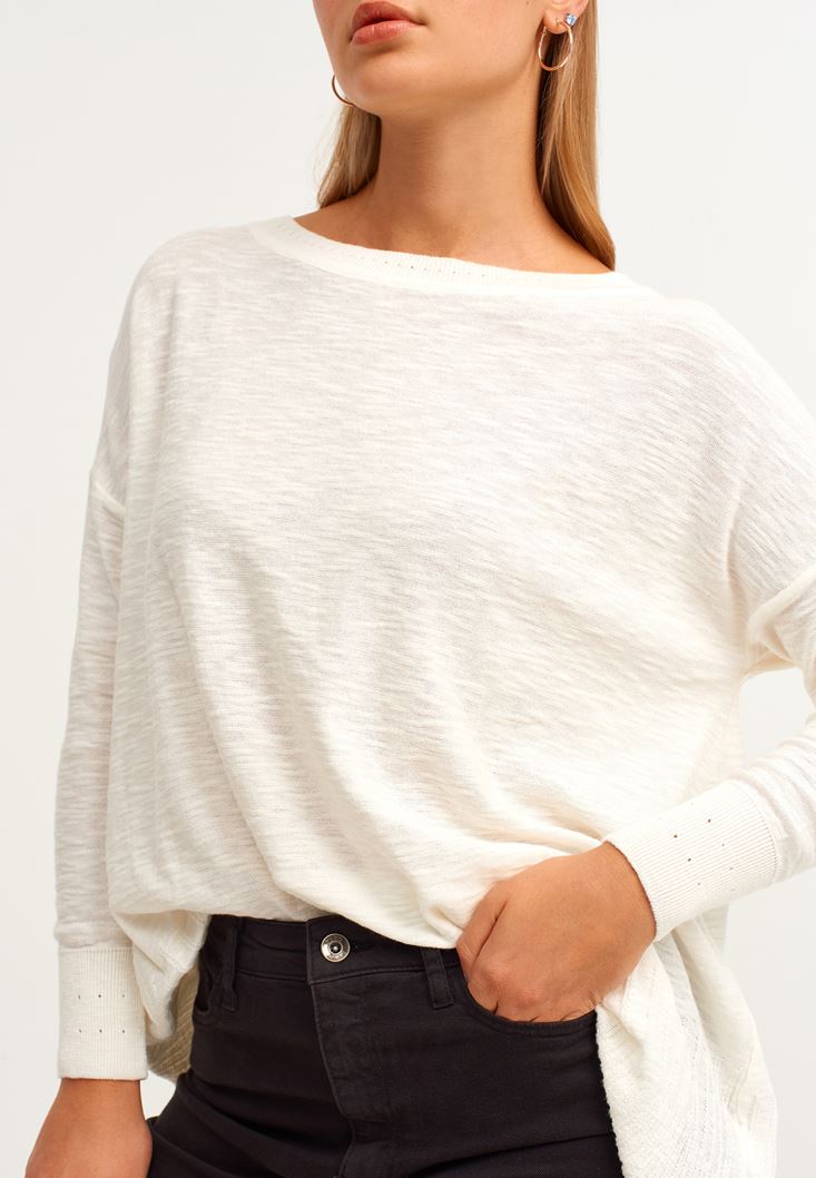 Krem Pamuklu Yumuşak Dokulu Triko