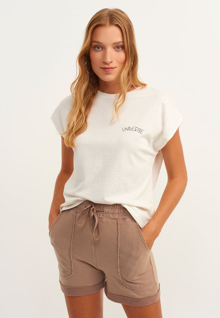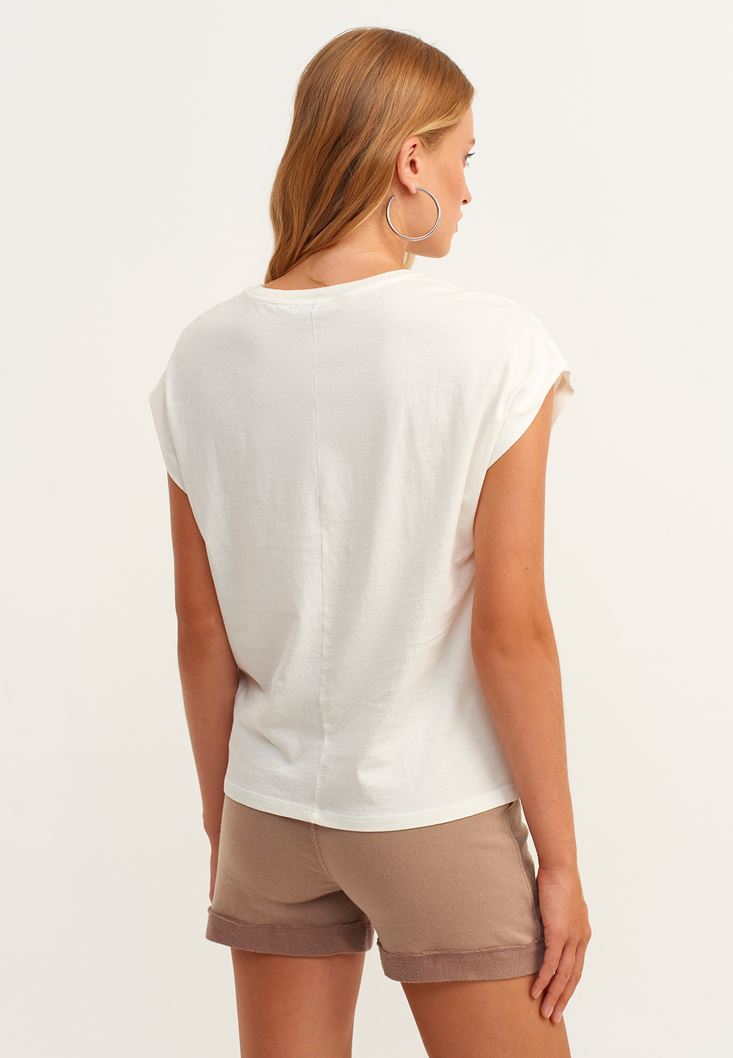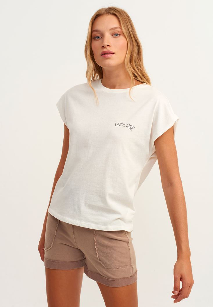 • Bayan Krem Pamuklu Zero-Neck Tişört