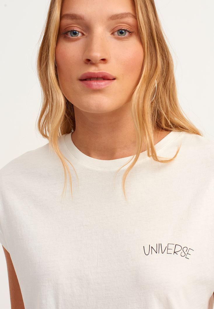 %100 pamuklu doku, bedene yakın rahat kalıp, sıfır yaka, kısa kollu, ön kısmı yazı detaylı, standart boy.