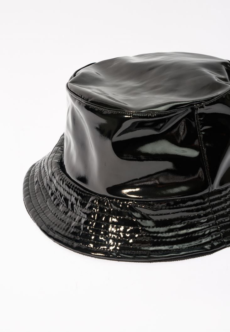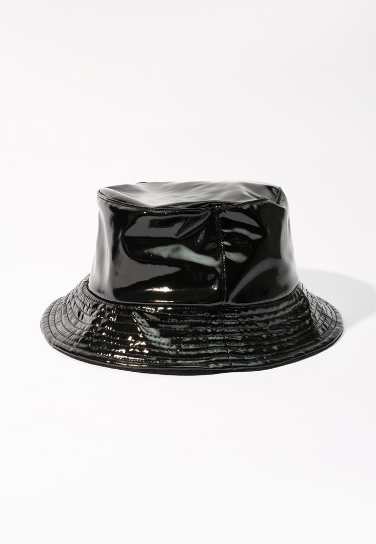 Siyah Parlak Bucket Şapka