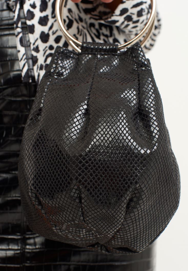 • Bayan Siyah Parlak Dokulu Mini Çanta