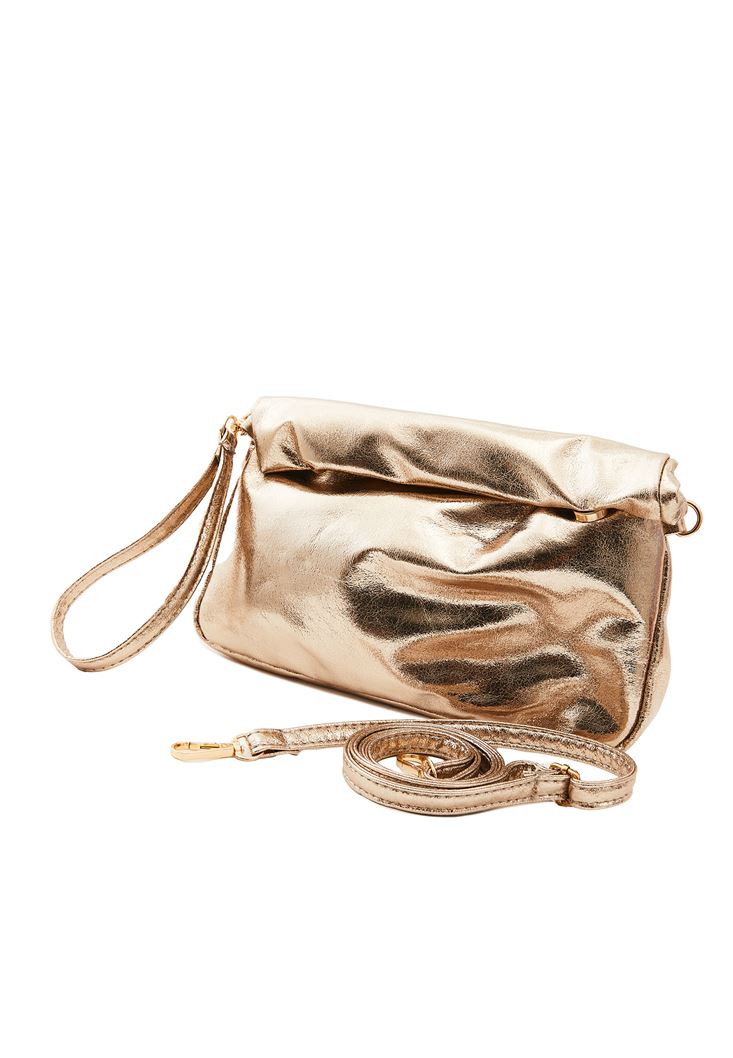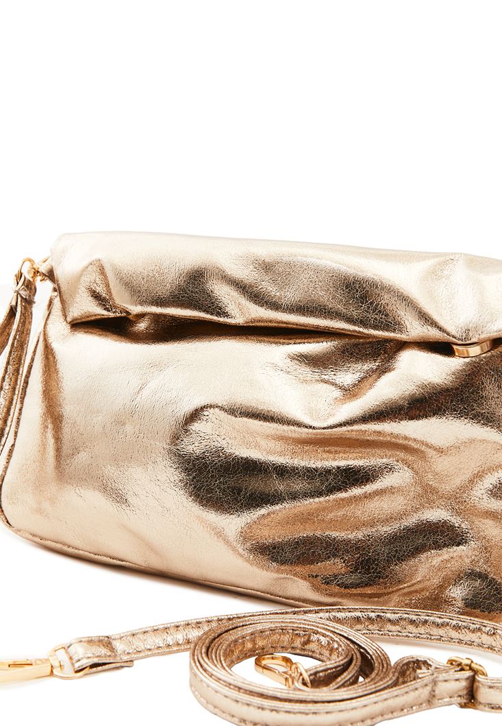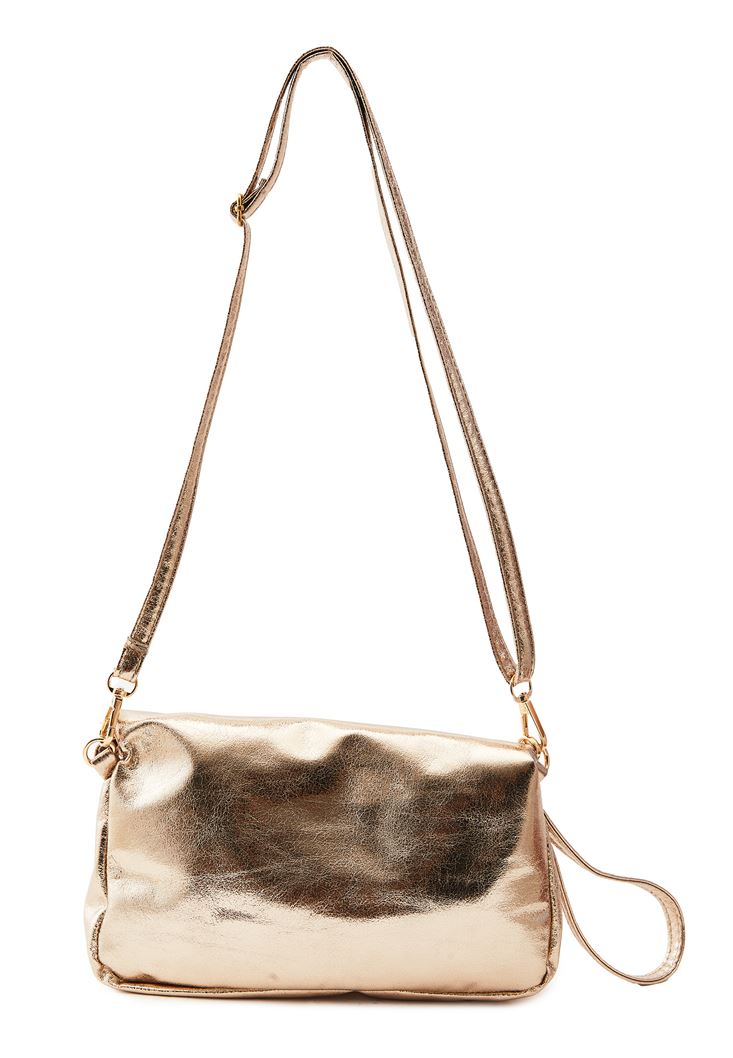 • Bayan Altın Parlak Dokulu Omuz Çantası