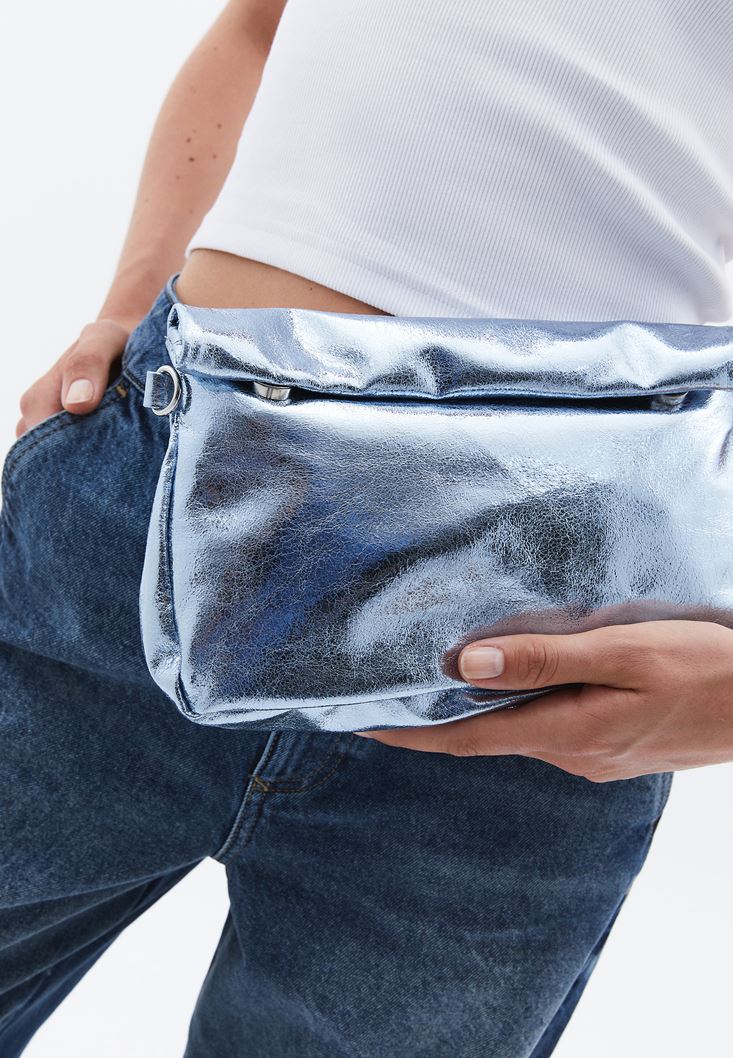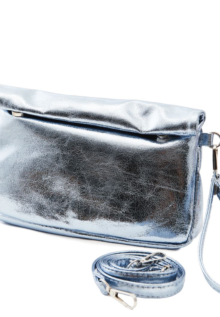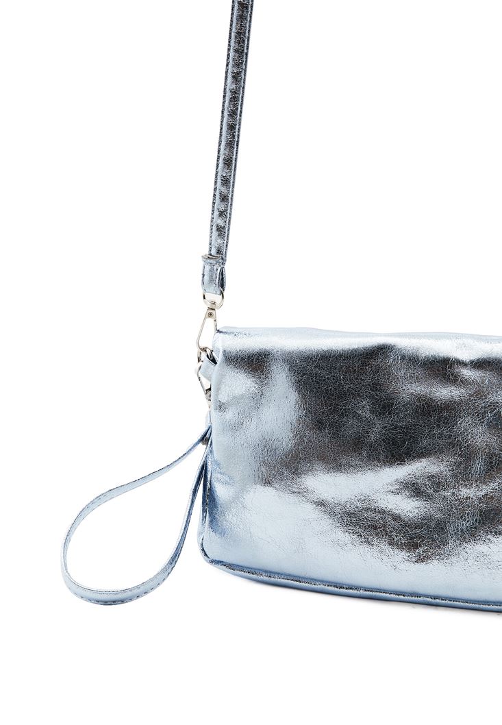 Gök Mavisi Parlak Dokulu Omuz Çantası