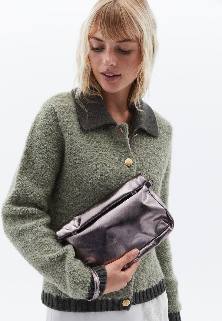 • Bayan Gri Parlak Dokulu Omuz Çantası