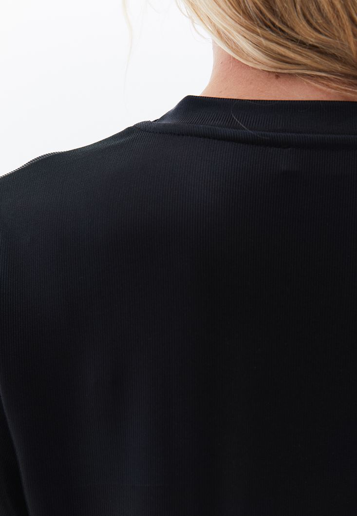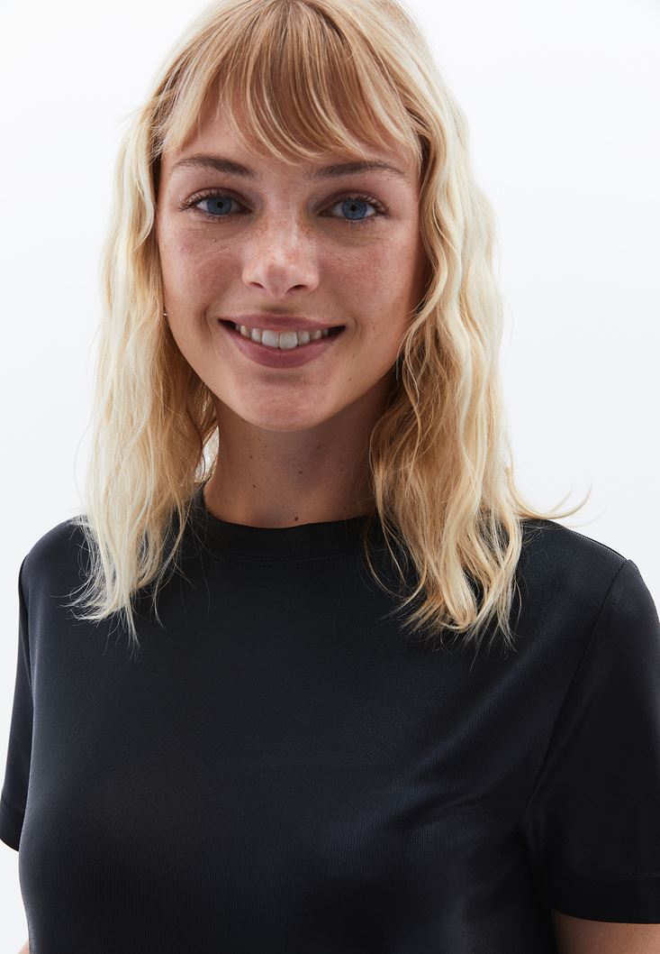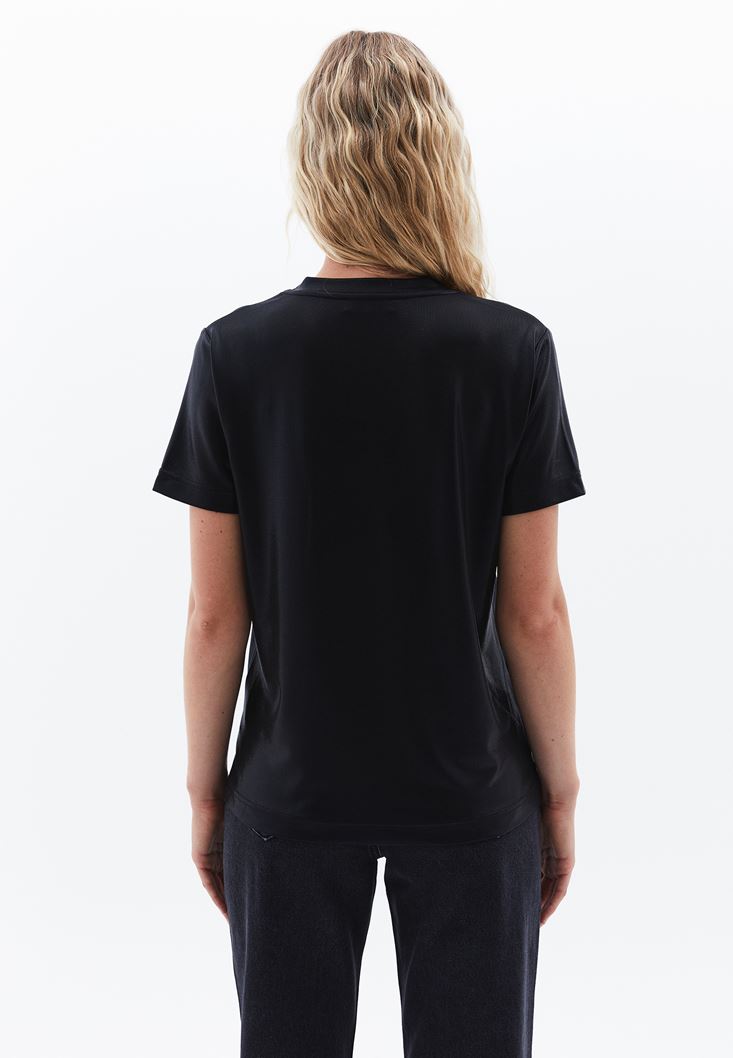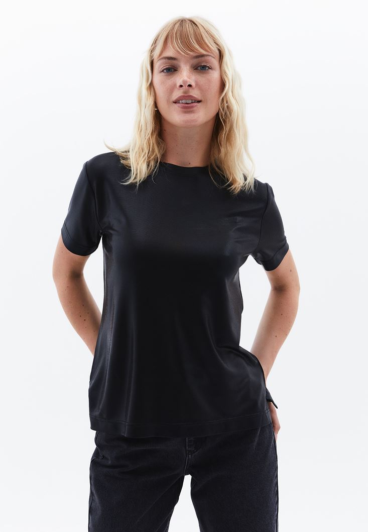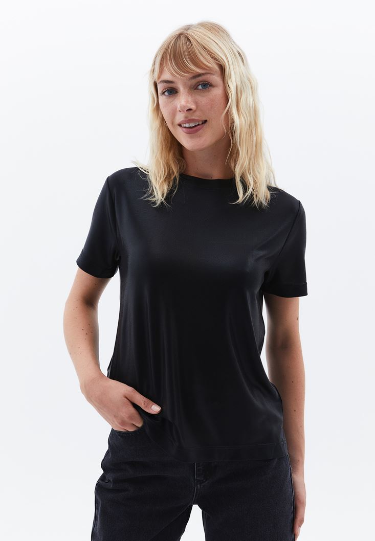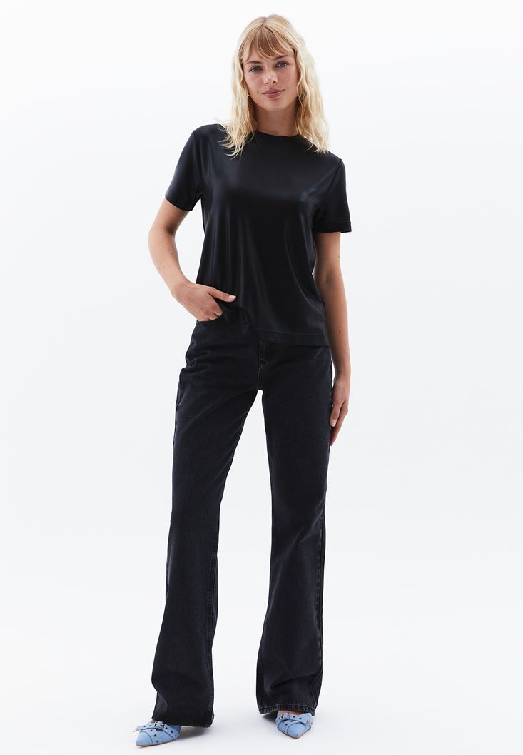 • Bayan Siyah Parlak Dokulu Sıfır Yaka Tişört