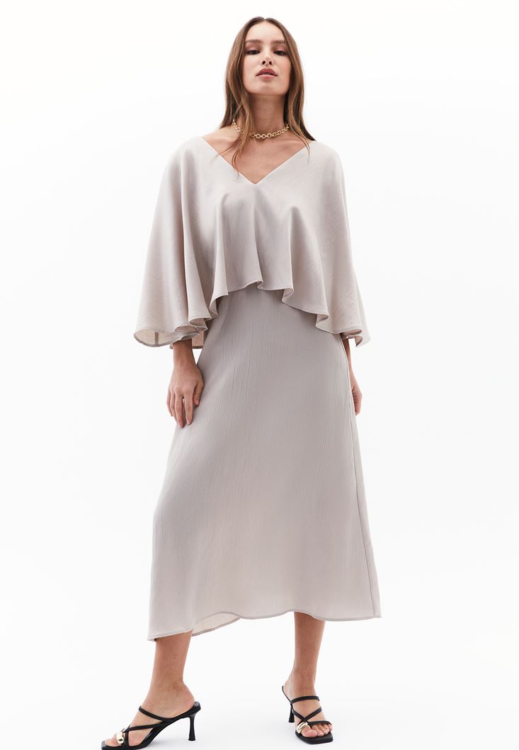Bej Pelerinli Saten Elbise