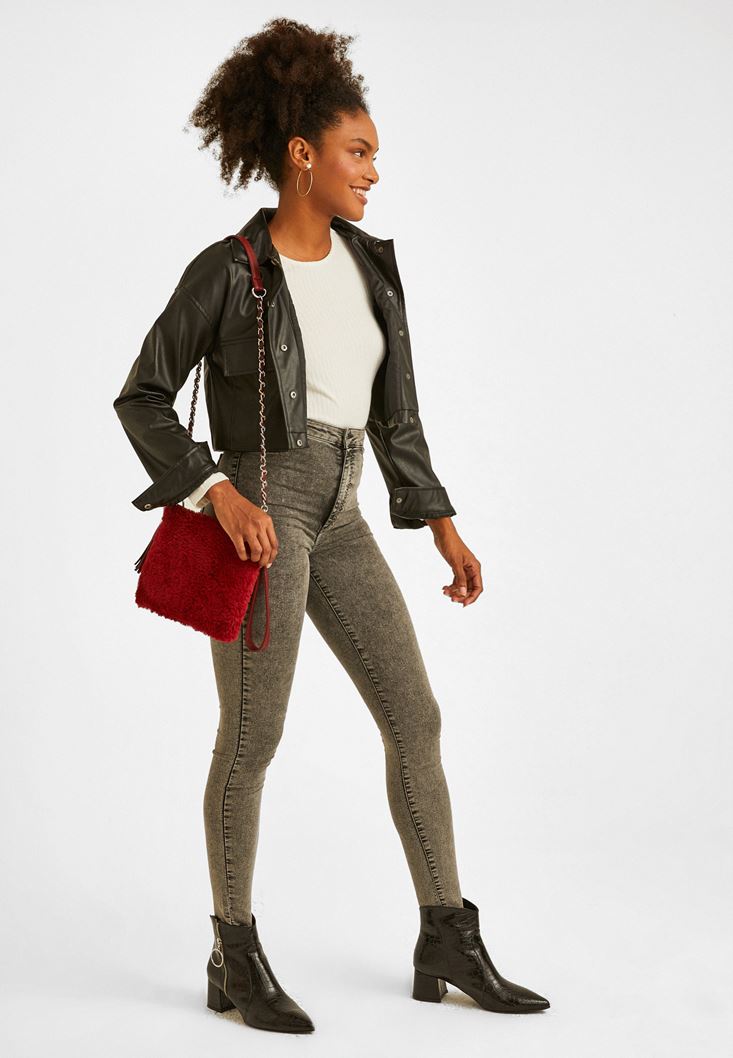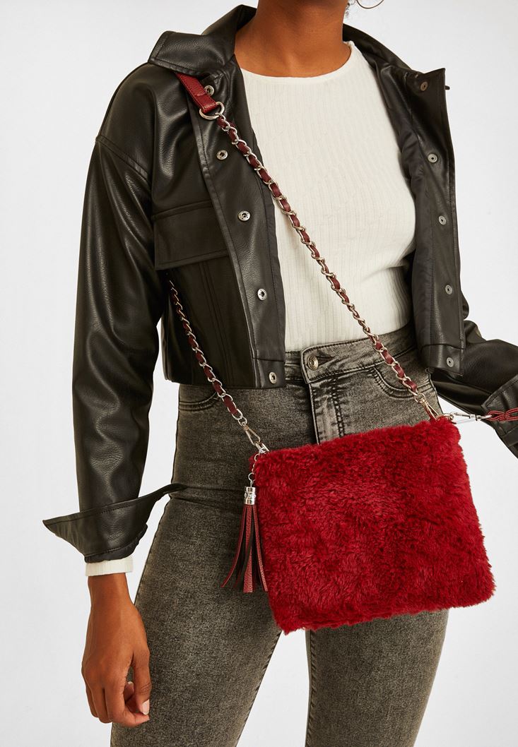 Bordo Peluş Detaylı Çanta