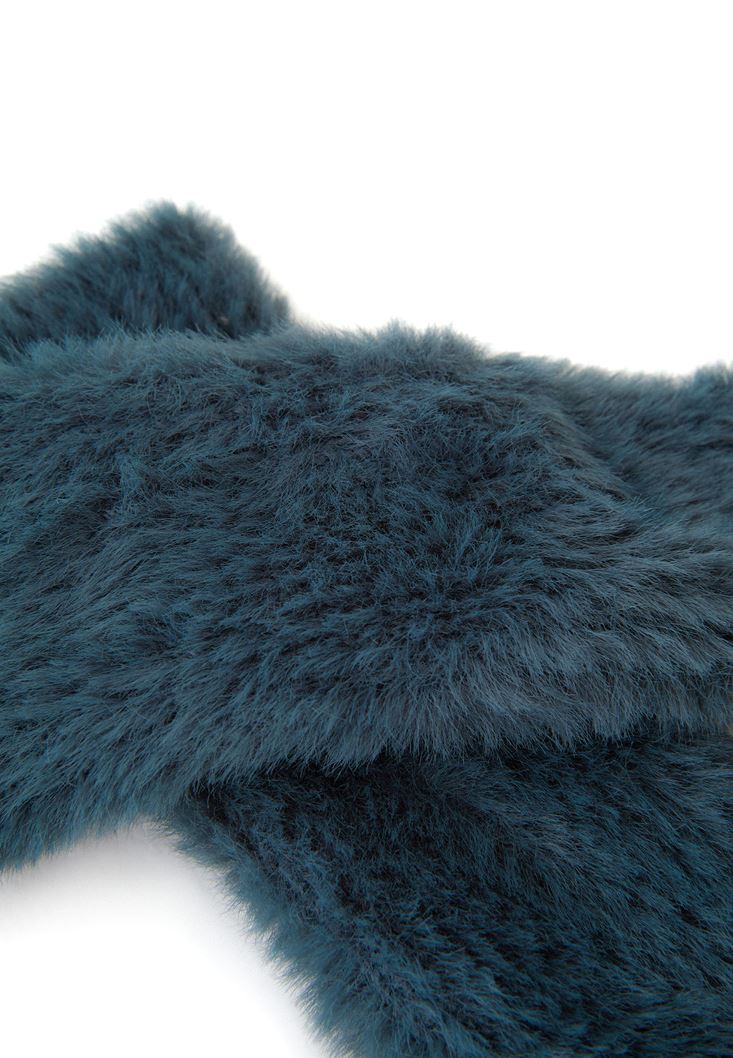 Yeşil Peluş Detaylı Eldiven