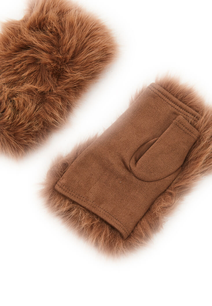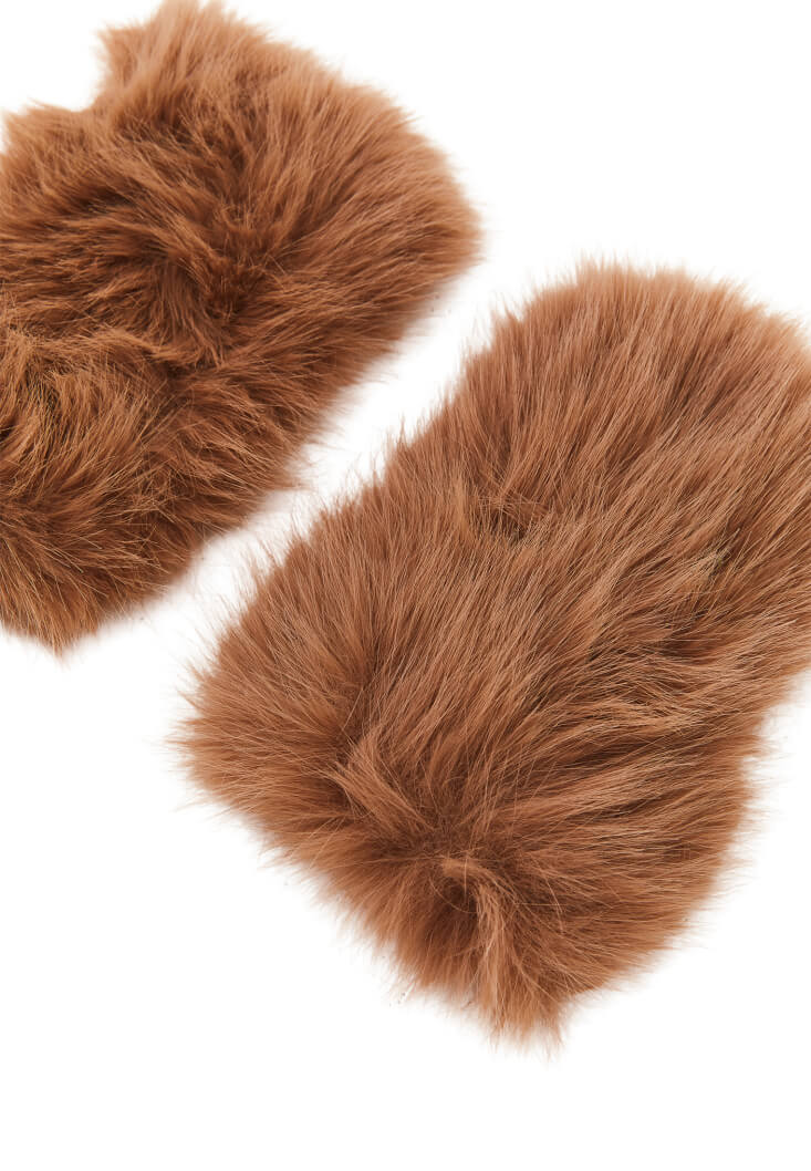 • Bayan Kahverengi Peluş Detaylı Eldiven