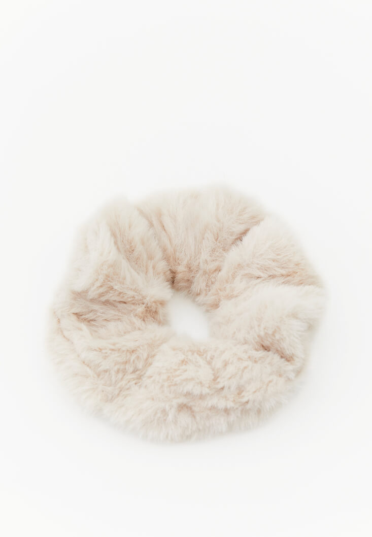 Krem Peluş Lastikli Saç Tokası