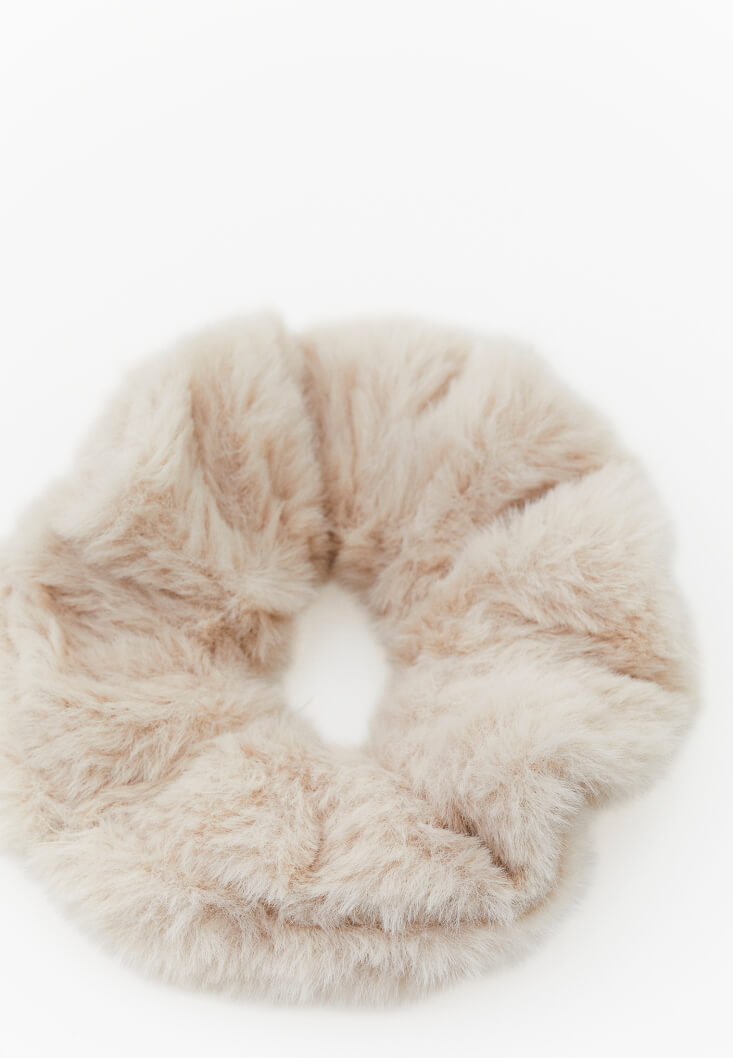 • Bayan Krem Peluş Lastikli Saç Tokası