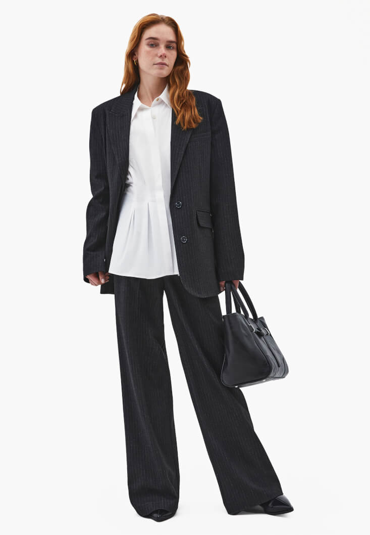 • Bayan Beyaz Pile Detaylı Gömlek