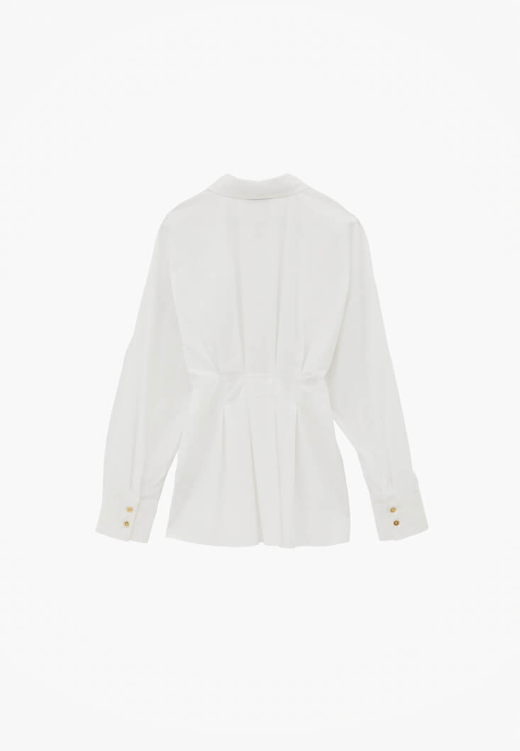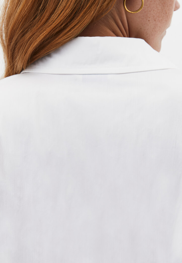 Beyaz Pile Detaylı Gömlek