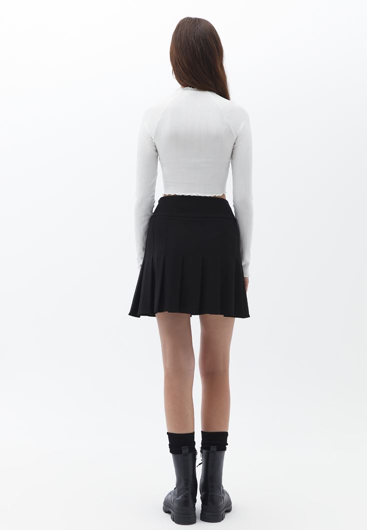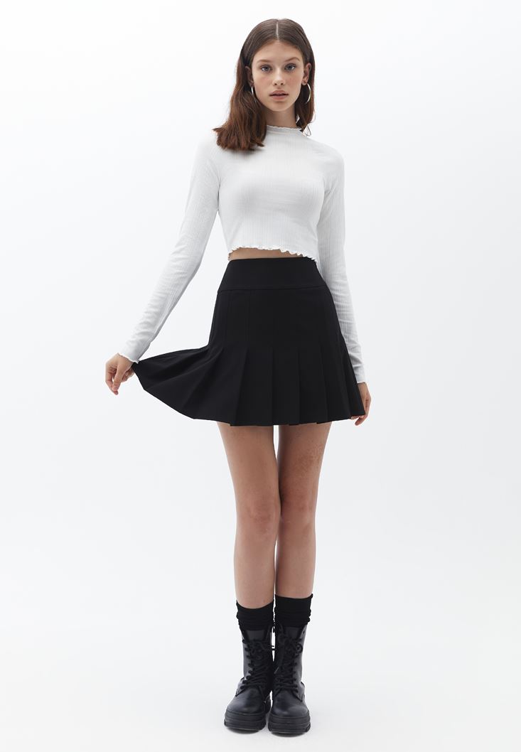 Siyah Pile Detaylı Mini Etek