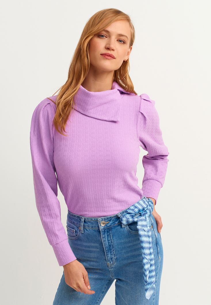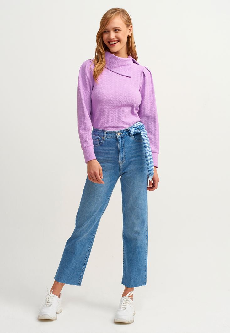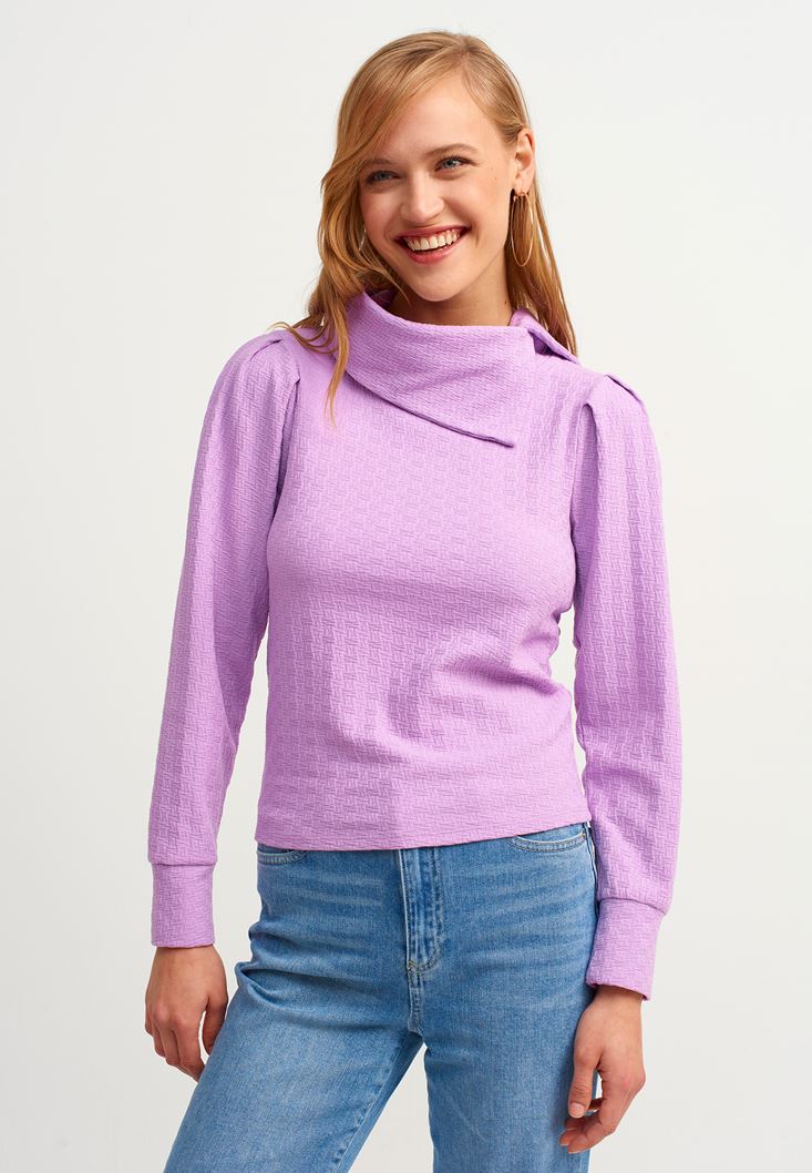 • Bayan Mor Pile ve Kruvaze Detaylı Kazak