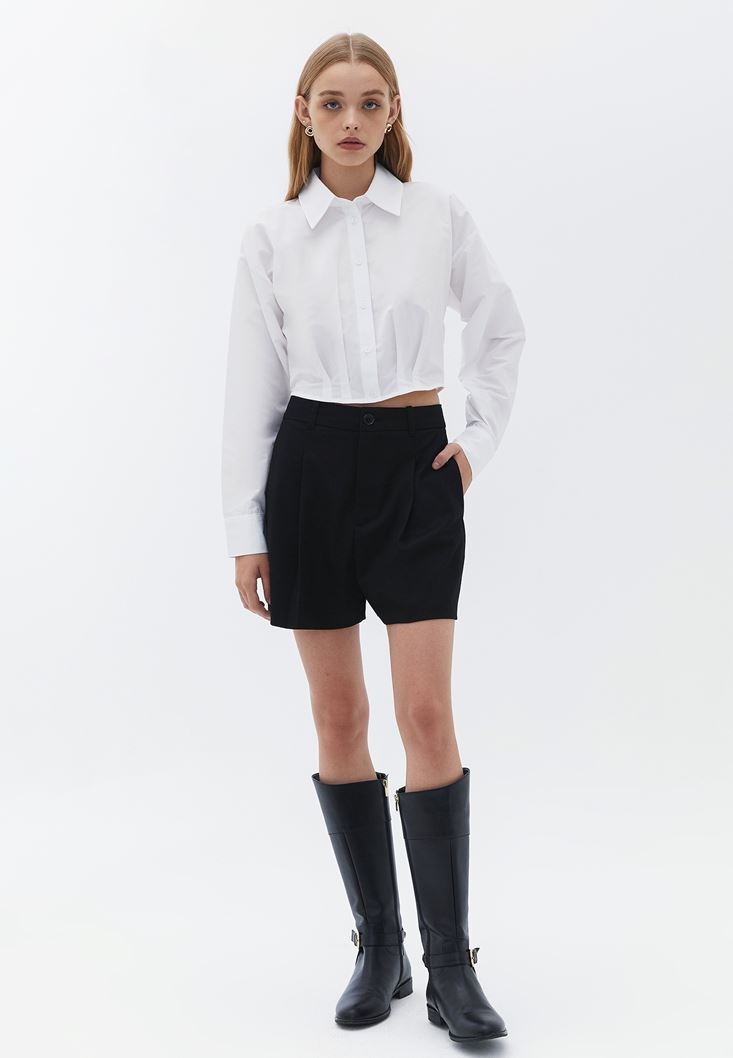 Pileli Şort ve Crop Gömlek Kombini