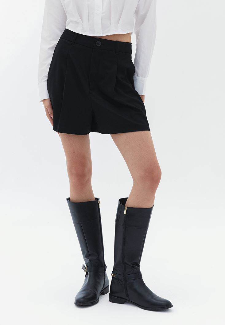 Ultra Yüksek Bel Pileli Şort