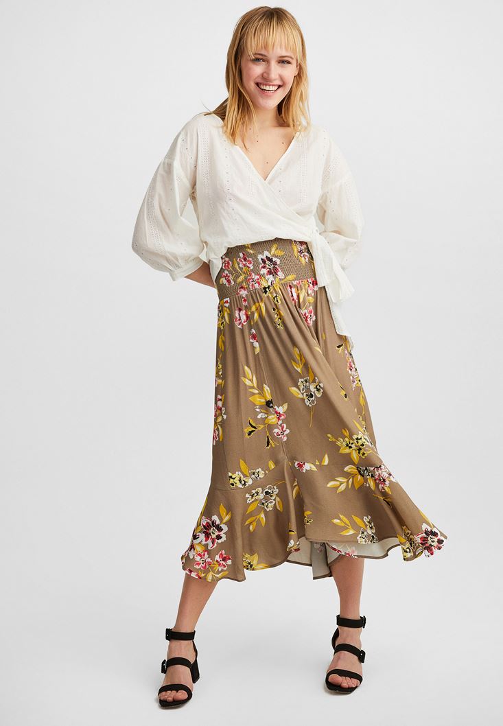 Renkli Pileli Uzun Etek modeli, viskon içerikli dokusu ve asimetrik görünümüyle yeni sezonda sizlerle buluşuyor. kadın etek modeli, pile ve volan ayrıntılarına ek olarak lastikli bel detayıyla şıklığın beraberinde rahatlık da sunuyor. Çiçek ve yaprak desenleriyle hareketli stillere yolculuk yapabileceğiniz uzun etek modeli, favorilerinize eklenmeyi bekliyor. Ayrıca crop bluz ve topuklu ayakkabı tercih edeceğiniz kombinleri kadın etek modeli ile renklendirebilirsiniz. Pileli etek modeli ile kısa denim ceket veya yelek modelleri kullanarak sezon trendlerinin izinden gidebilirsiniz. Oxxo'nun yenilikçi ve enerjik detaylarla sizlere sunduğu kadın etek modelleri ile hem beğenilen hem de sizlere keyif veren hoş kombinler yapabilirsiniz.